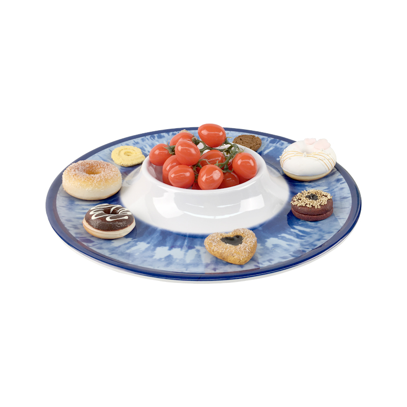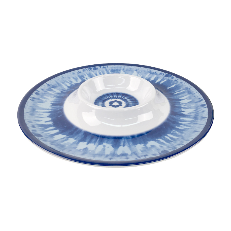 Super practical Irregular melamine serving chip dip tray Restaurant household white plastic melamine round chip and dip tray