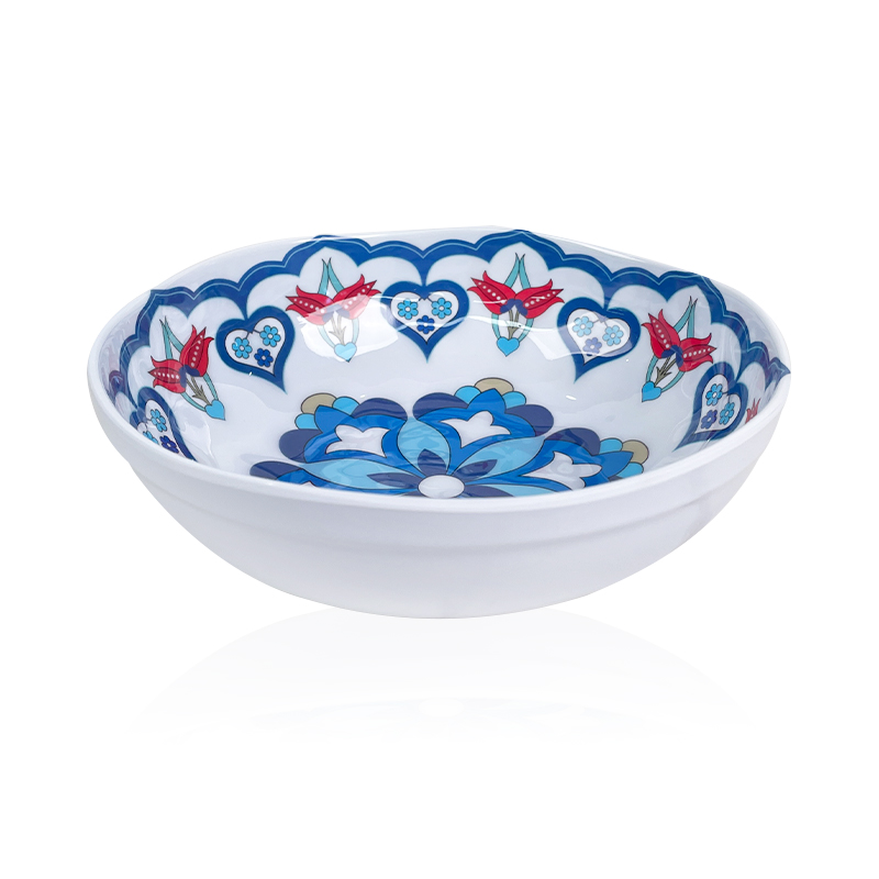 Ufinyanzi wa Talavera huadhimishwa kwa rangi zake nyororo, motifu changamano za maua, na haiba iliyotengenezwa kwa mikono. Bakuli zetu za Pasta za Melamine Talavera hunasa urithi huo kwa njia isiyoweza kuharibika, na yenye matengenezo ya chini. Rangi za samawati, nyekundu na nyeupe zinafanana na urembo wa jadi wa Meksiko, na kugeuza tambi, saladi au sahani zako za kushiriki kuwa kazi za sanaa. Kwa mikahawa, hii inamaanisha vifaa vya mezani ambavyo hubadilika maradufu kama mapambo—hakuna tena kuchagua kati ya urembo na vitendo.