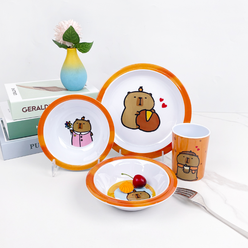 పిల్లలు & పెద్దలకు పునర్వినియోగించదగినది: ఆహార-సురక్షితమైన మెలమైన్తో తయారు చేయబడింది, ఇది పగిలిపోకుండా ఉంటుంది (పిల్లల వికృతమైన చేతులకు తగినంత గట్టిగా ఉంటుంది) మరియు రోజువారీ పెద్దల ఉపయోగం కోసం మన్నికైనది. అంతేకాకుండా, ఇది అవాంతరాలు లేని శుభ్రపరచడానికి డిష్వాషర్-సురక్షితమైనది.