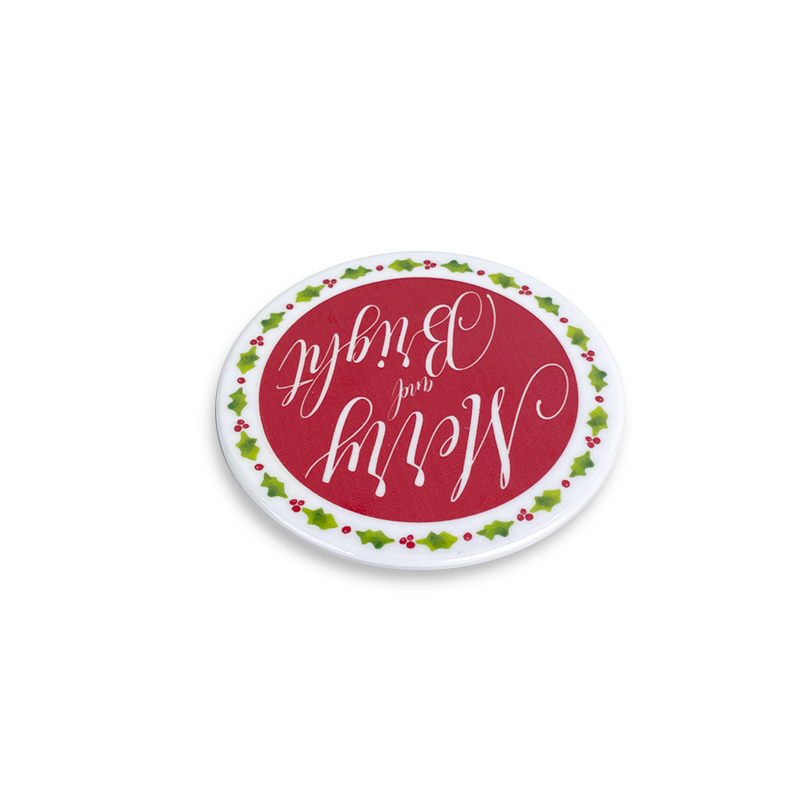 సున్నితమైన ఆకుపచ్చ హోలీ ఆకులు మరియు స్కార్లెట్ బెర్రీలు టెక్స్ట్ చుట్టూ తొంగి చూస్తాయి, ఆధునిక మెలమైన్ ట్విస్ట్తో క్లాసిక్ క్రిస్మస్ అలంకరణను ప్రతిధ్వనిస్తాయి.