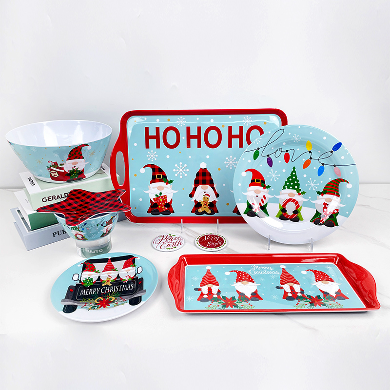 అలంకార మెలమైన్ ప్లేట్లు: వాటిని మాంటెల్పై ఆసరాగా ఉంచండి, వాటిని వాల్ ఆర్ట్గా వేలాడదీయండి లేదా క్యాండీలు/బహుమతులు ప్రదర్శించడానికి వాటిని ఉపయోగించండి. వాటి క్లాసిక్ డిజైన్ మినిమలిస్ట్ నుండి ట్రెడిషనల్ వరకు ఏదైనా హాలిడే సెటప్కు పూర్తి చేస్తుంది.
