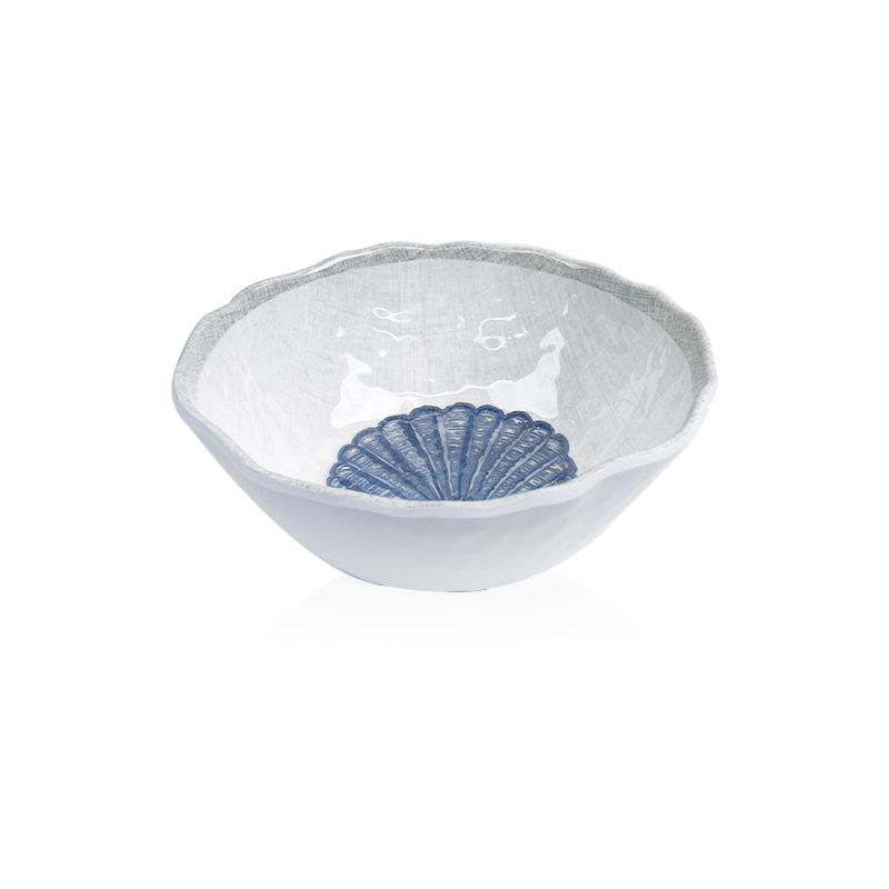 Mix with solid-colored melamine pieces to let the seashell pattern stand out.