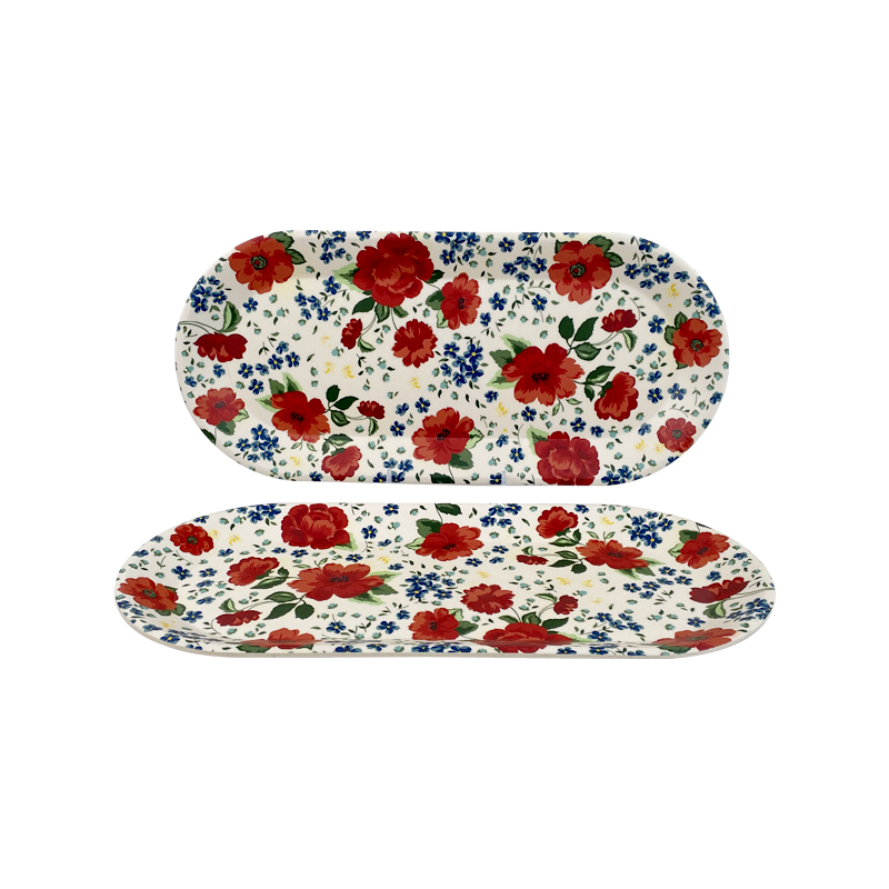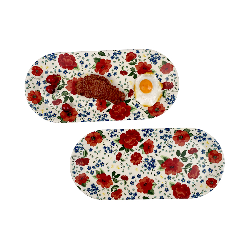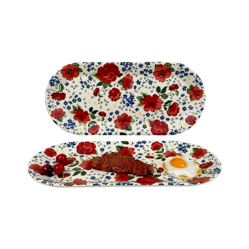 Iba't ibang Mahusay na Malikhaing Bamboo Fiber Oval Tray Printed Bamboo Fiber Serving Tray
