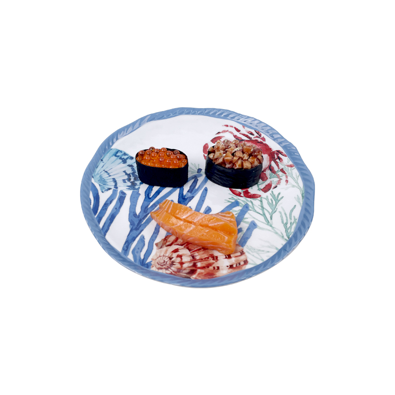 Top Quality Party Plate And Napkin Set - Cheap Price Wholesale Custom Melamine Plates Ocean series Logo coral scallop crab conch pattern Customized Melamine Plate – BECO Detail: