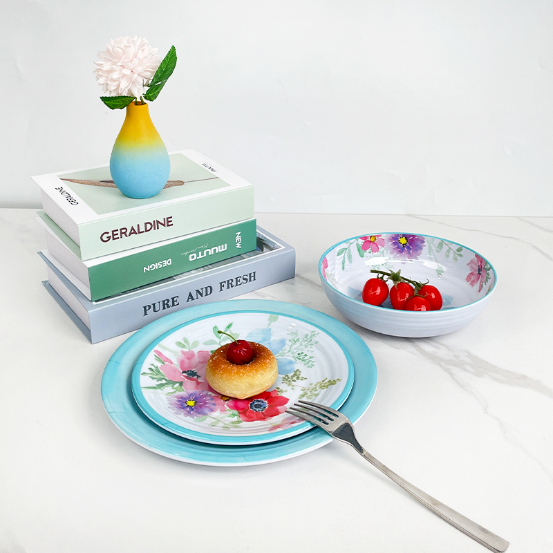 As a Wholesale Custom Melamine Plate, we support full customization: add your restaurant’s logo, adjust the floral pattern, or tweak the rim color to align with your brand’s aesthetic—turn this plate into a unique touchpoint for your business.