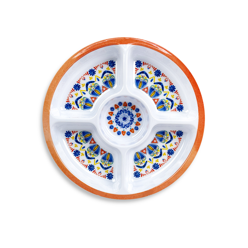 Bring authentic Mexican Talavera charm to every snack spread with our Wholesale Mexican Talavera 4-Compartment Melamine Divided Dish—a vibrant Divided Dish that merges traditional design with practical melamine durability, perfect as a Terracotta Rim Snack & Dip Serving Tray for household use (and a sought-after wholesale find for themed serveware).