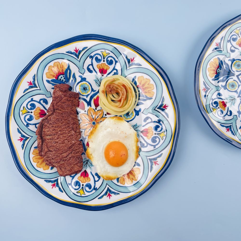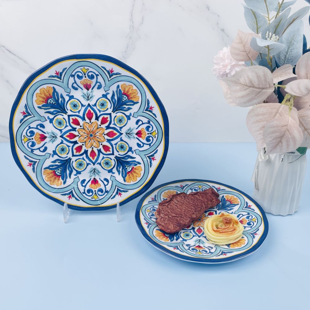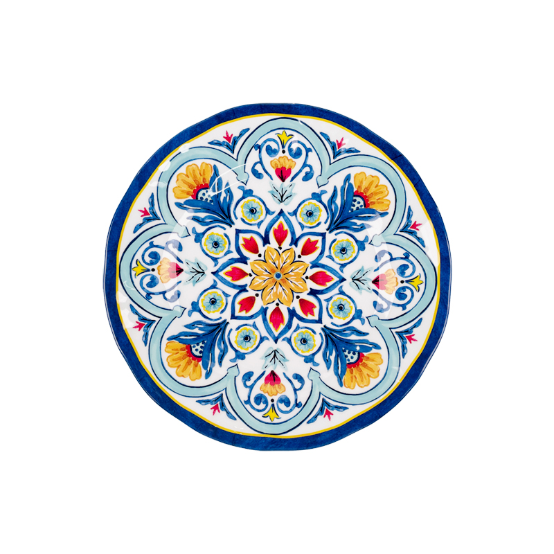 Blue melamine boards are durable and stylish dining essentials, perfect for indoor and outdoor use. Its vibrant blue color adds a pop of brightness to any table setting, making it an attractive choice for entertaining guests or for everyday meals. The melamine material is lightweight, shatterproof and scratch-resistant, making it a practical choice for homes with children or for use in outdoor environments. The plate is also dishwasher safe, making it easy to clean and maintain. Its versatile and practical design makes it a great choice for picnics, BBQs, camping trips and everyday use.