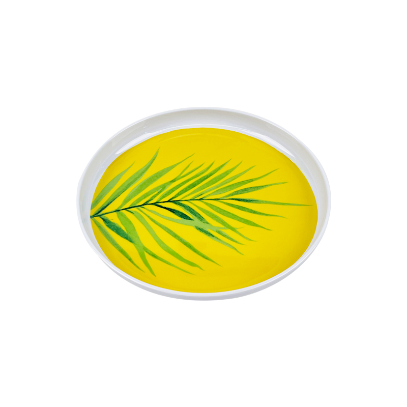 Wholesale Round Dinner Melamine Plate with Green Leaf Pattern Plastic Round Custom Plate
