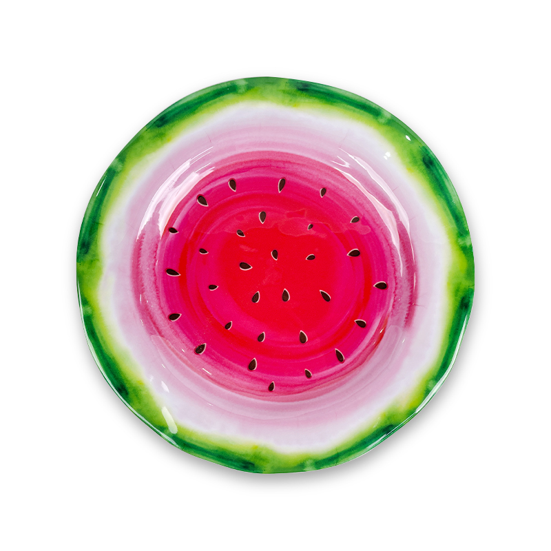 Khawufane ucinge ngokukhonza iziqhamo ezitsha, iisaladi ezikrwada, iisuphu ezipholileyo, okanye iipopcorn zasebusuku zemovie kwisitya esiva ngathi sisilayi selanga lasehlotyeni. I-Watermelon Print Reusable Melamine Bowl yethu yenza kanye loo nto-idibanisa uyilo oluphefumlelweyo lwevatala kunye nokuqina kunye nozinzo kwimfuno yamakhitshi anamhlanje. Nokuba ubambe indibano engasemva kwendlu, ulungiselela isidlo sangokuhlwa sosapho, okanye ufuna itafile enegama kwishishini lakho, esi sitya sinikezela ngesitayile, ukuguquguquka, kunye nokuqonda kwendalo kuyo yonke into esetyenziswayo.