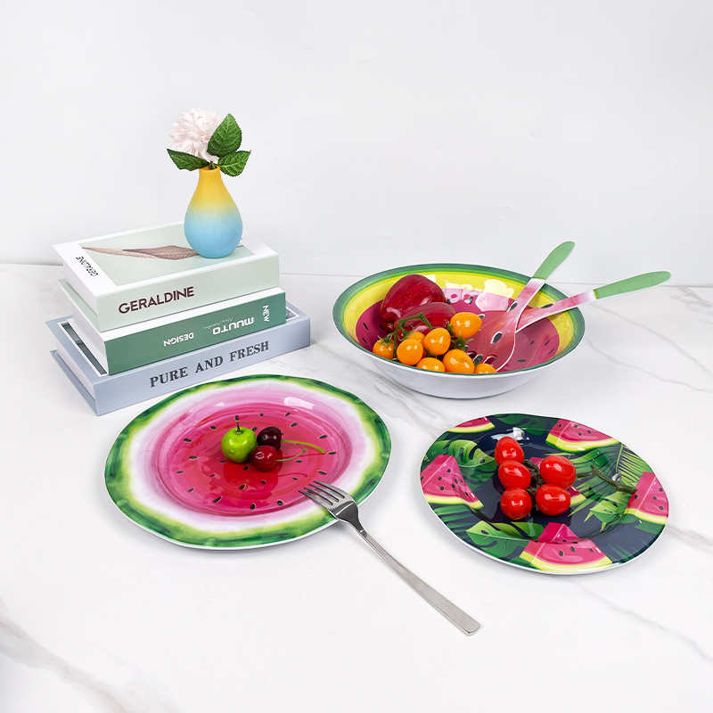 I-Watermelon Print Reusable Melamine Bowl – YesiQhamo, iSaladi, isuphu, iPopcorn | I-OEM ODM yenziwe ngokwezifiso, iZinzile, ipateni ye-LOGO yamkelwe